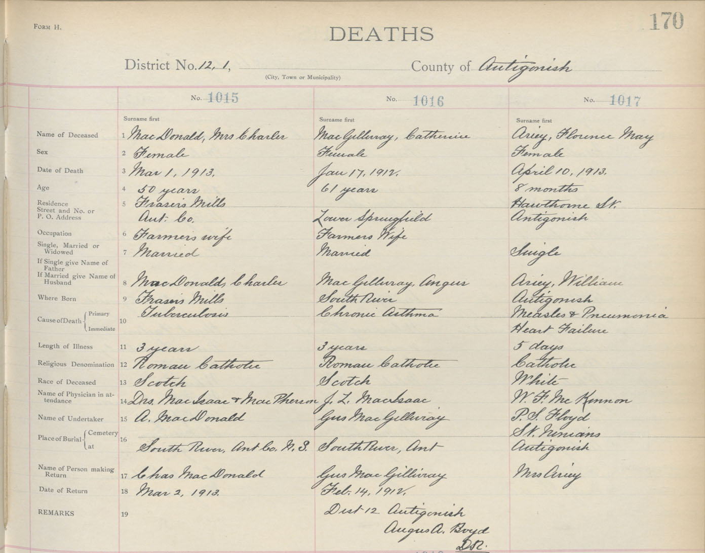 Death Registration: Year: 1913 book: 2 page: 170 number: 1015