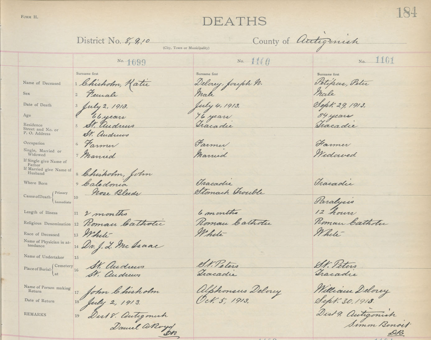 Death Registration: Year: 1913 book: 2 page: 184 number: 1099