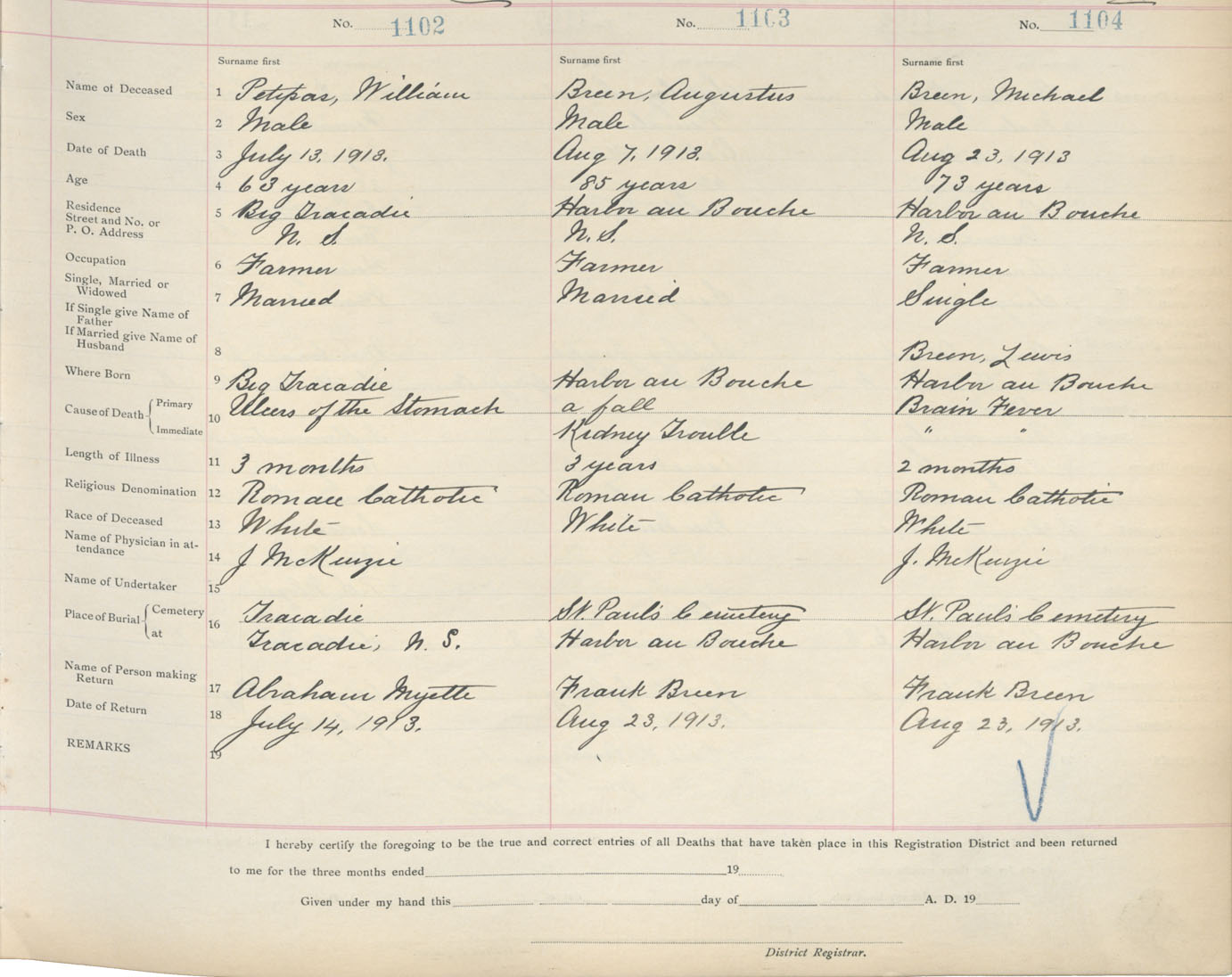 Death Registration: Year: 1913 book: 2 page: 184 number: 1104