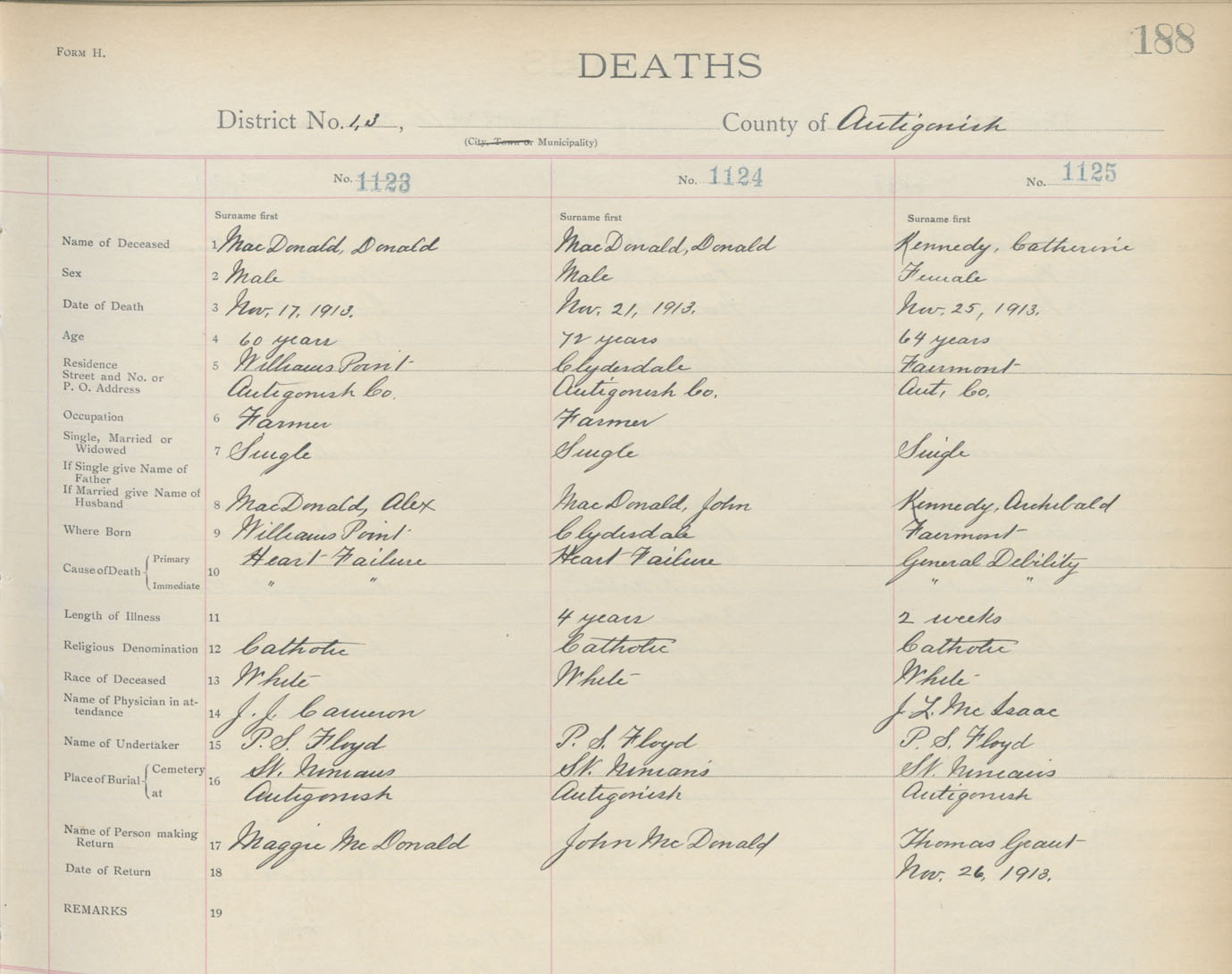Death Registration: Year: 1913 book: 2 page: 188 number: 1123