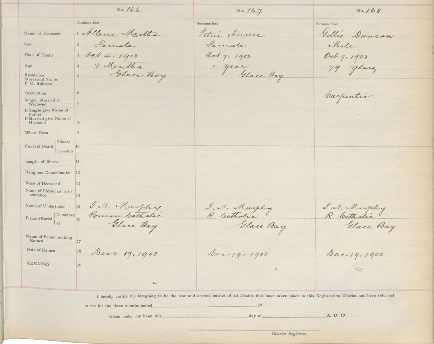 Death Registration: Year: 1908 book: 3 page: 28 number: 168