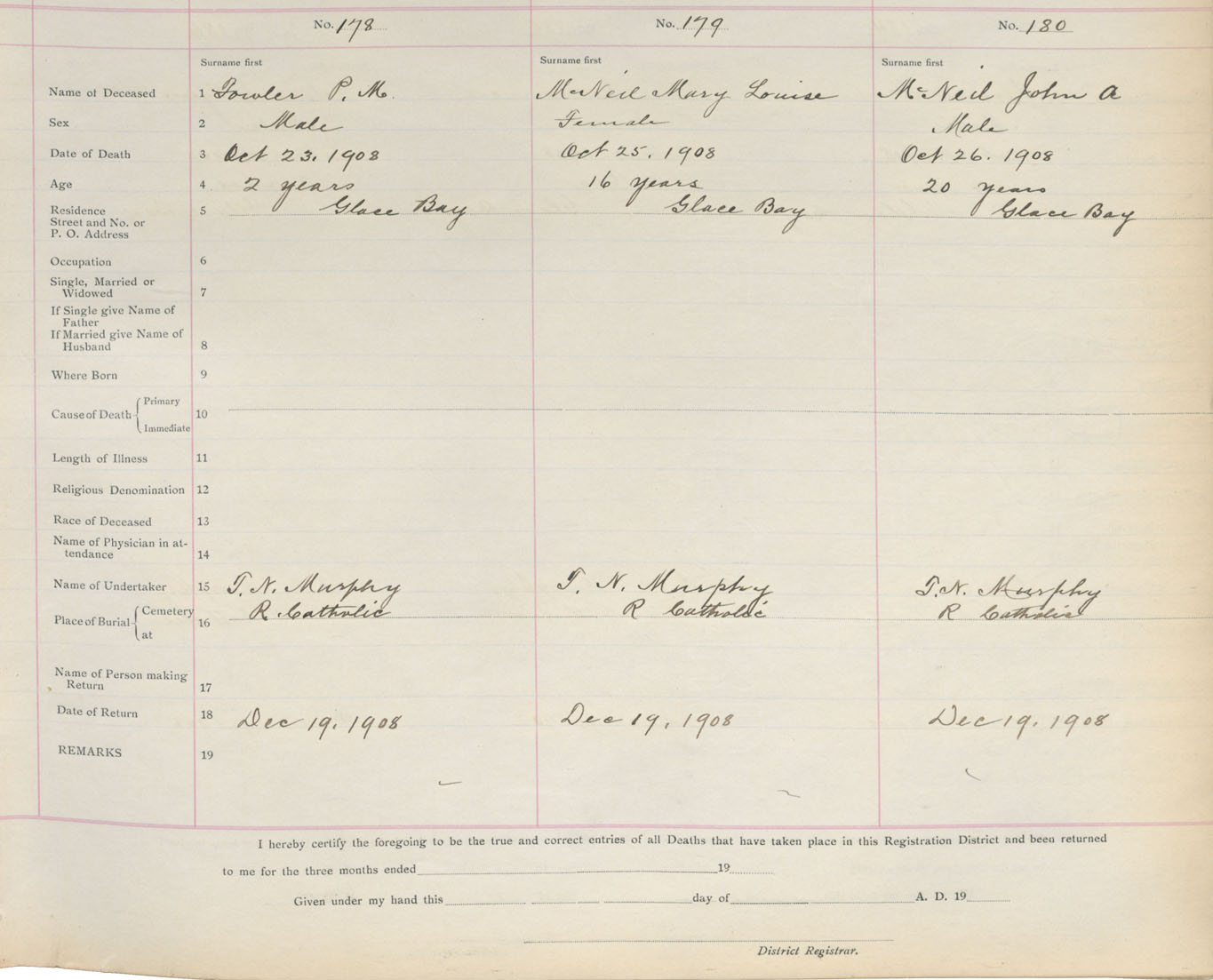 Death Registration: Year: 1908 book: 3 page: 30 number: 178