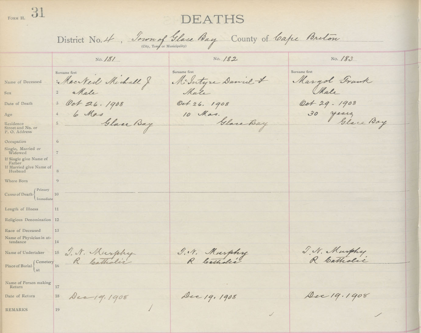 Death Registration: Year: 1908 book: 3 page: 31 number: 183