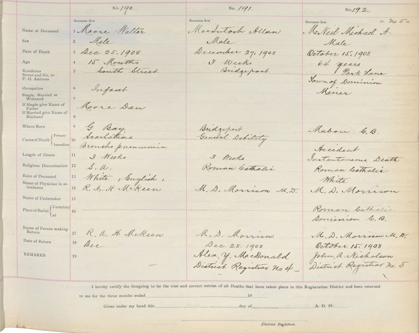 Death Registration: Year: 1908 book: 3 page: 32 number: 192