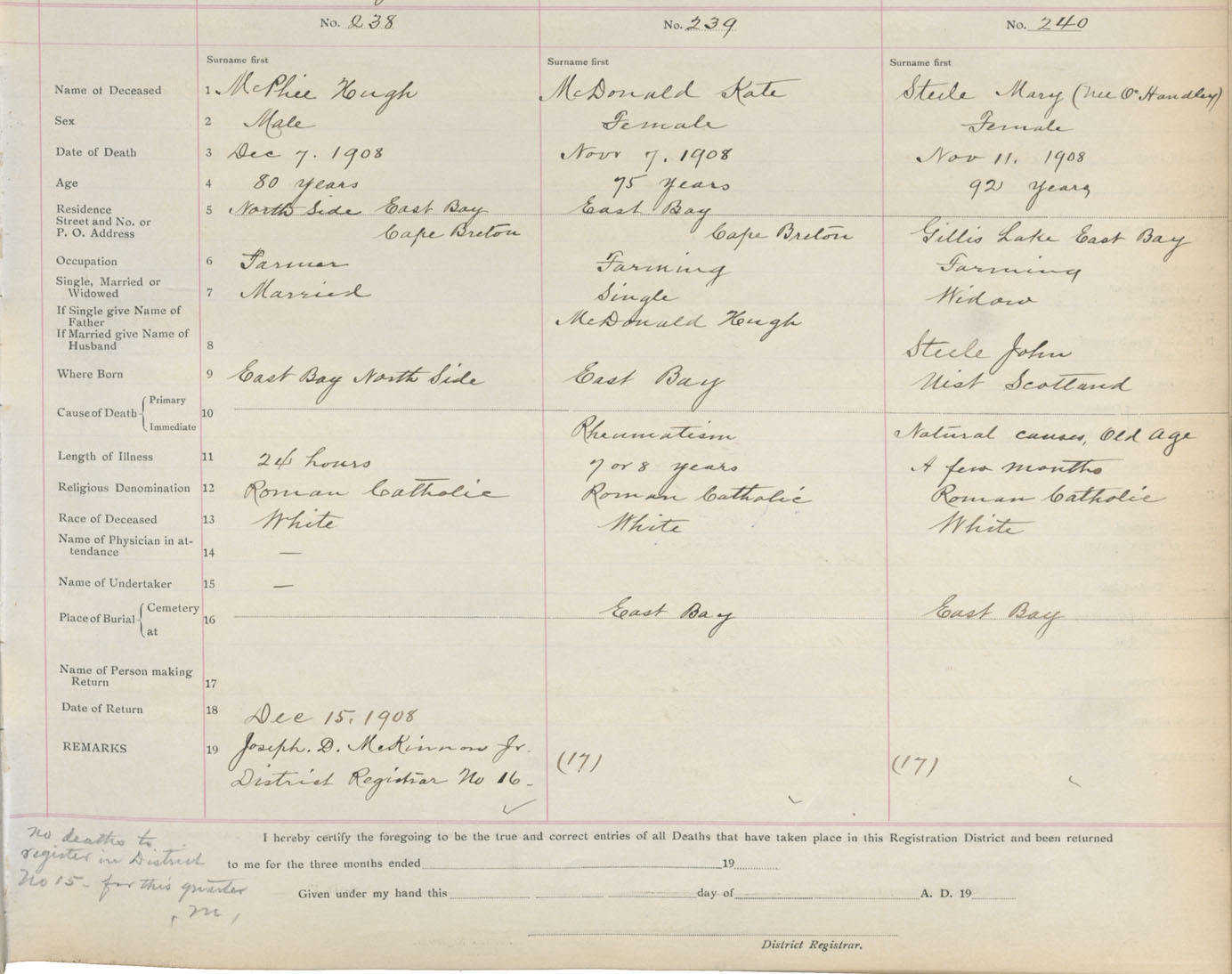 Death Registration: Year: 1908 book: 3 page: 40 number: 239