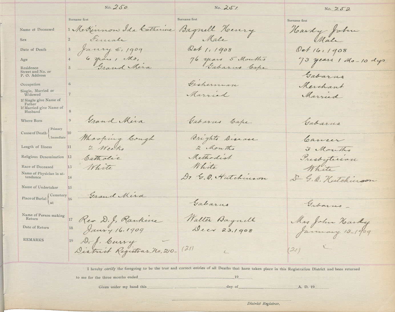 Death Registration: Year: 1908 book: 3 page: 42 number: 252
