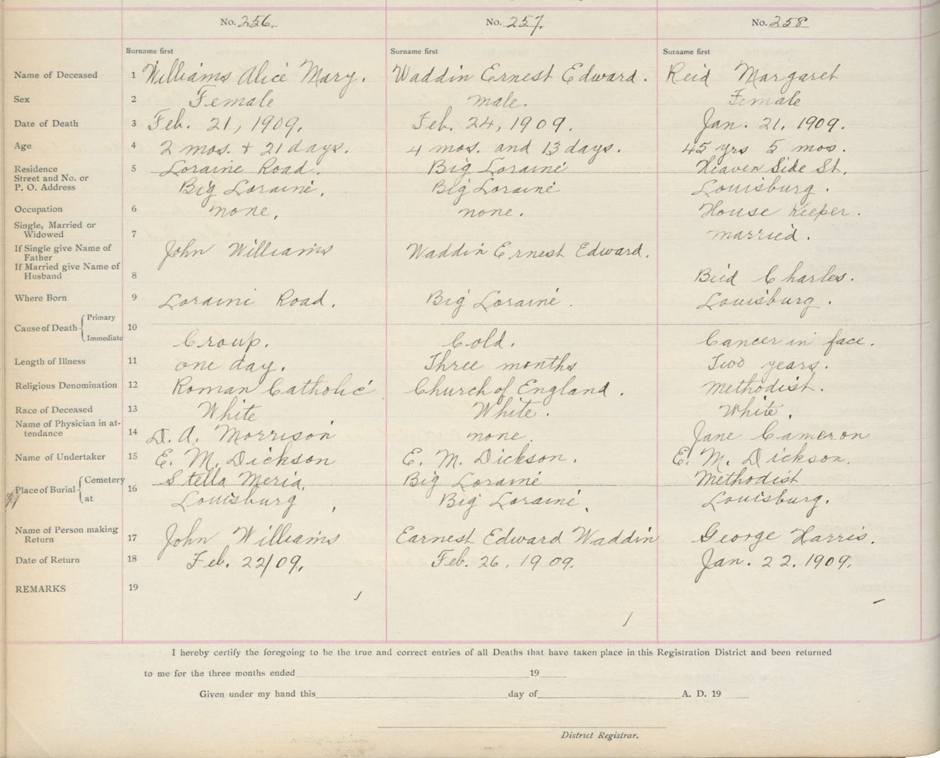 Death Registration: Year: 1909 book: 3 page: 43 number: 256