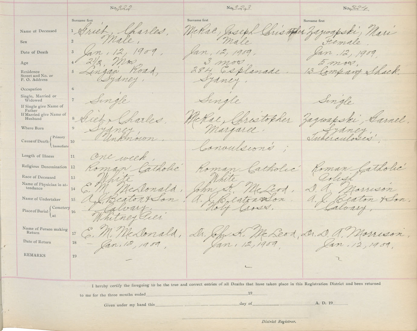 Death Registration: Year: 1909 book: 3 page: 54 number: 324