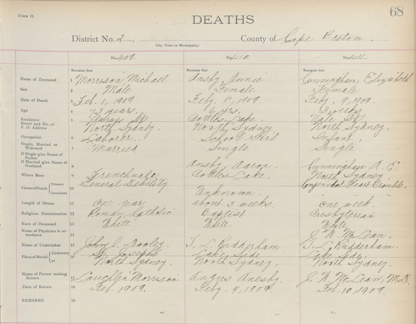 Death Registration: Year: 1909 book: 3 page: 68 number: 409