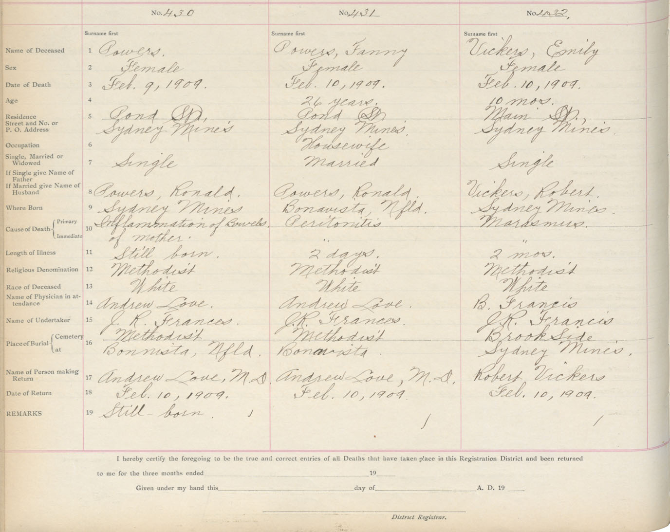 Death Registration: Year: 1909 book: 3 page: 71 number: 430