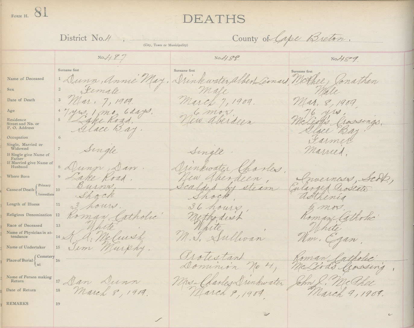 Death Registration: Year: 1909 book: 3 page: 81 number: 489