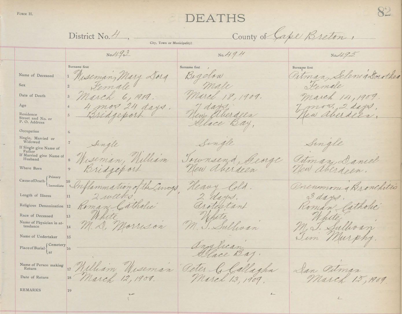 Death Registration: Year: 1909 book: 3 page: 82 number: 495