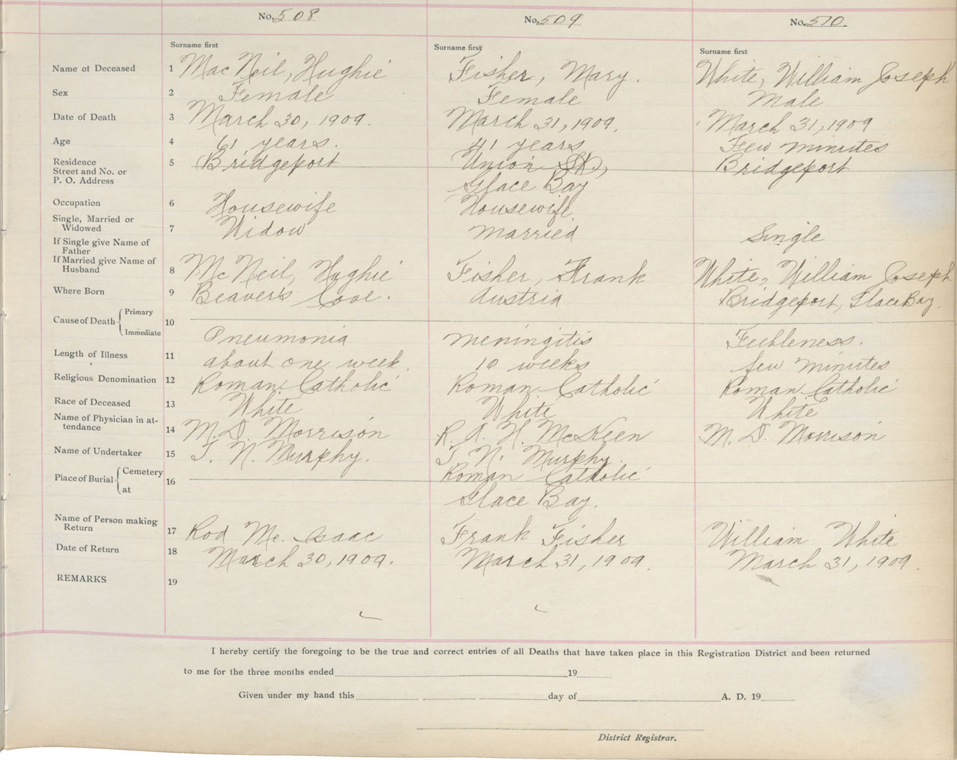 Death Registration: Year: 1909 book: 3 page: 84 number: 510
