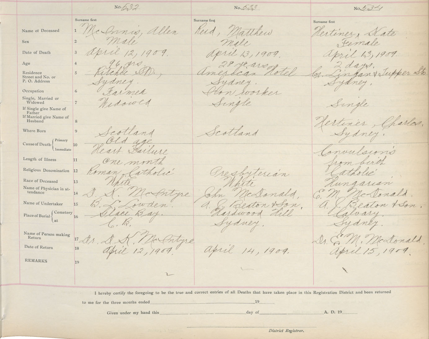 Death Registration: Year: 1909 book: 3 page: 88 number: 532