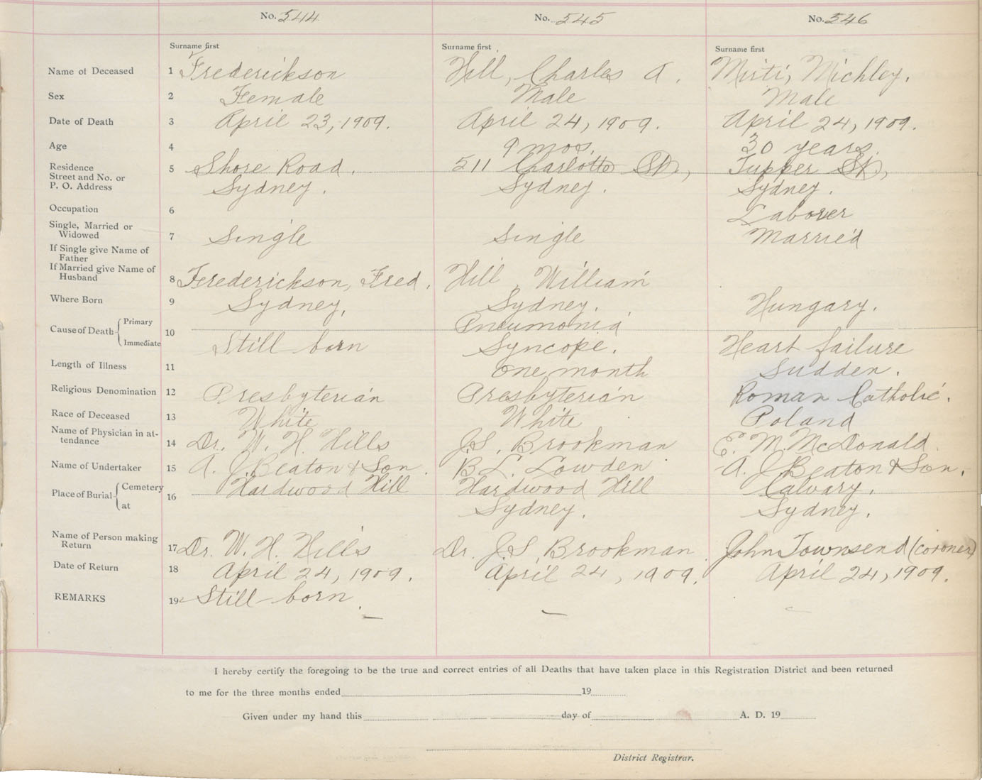 Death Registration: Year: 1909 book: 3 page: 90 number: 544