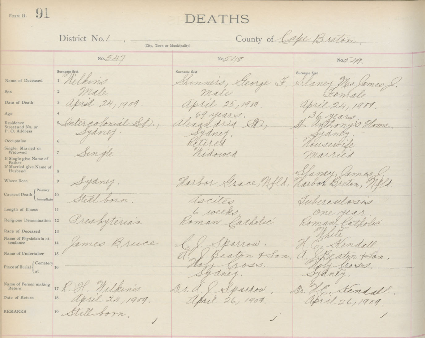 Death Registration: Year: 1909 book: 3 page: 91 number: 547