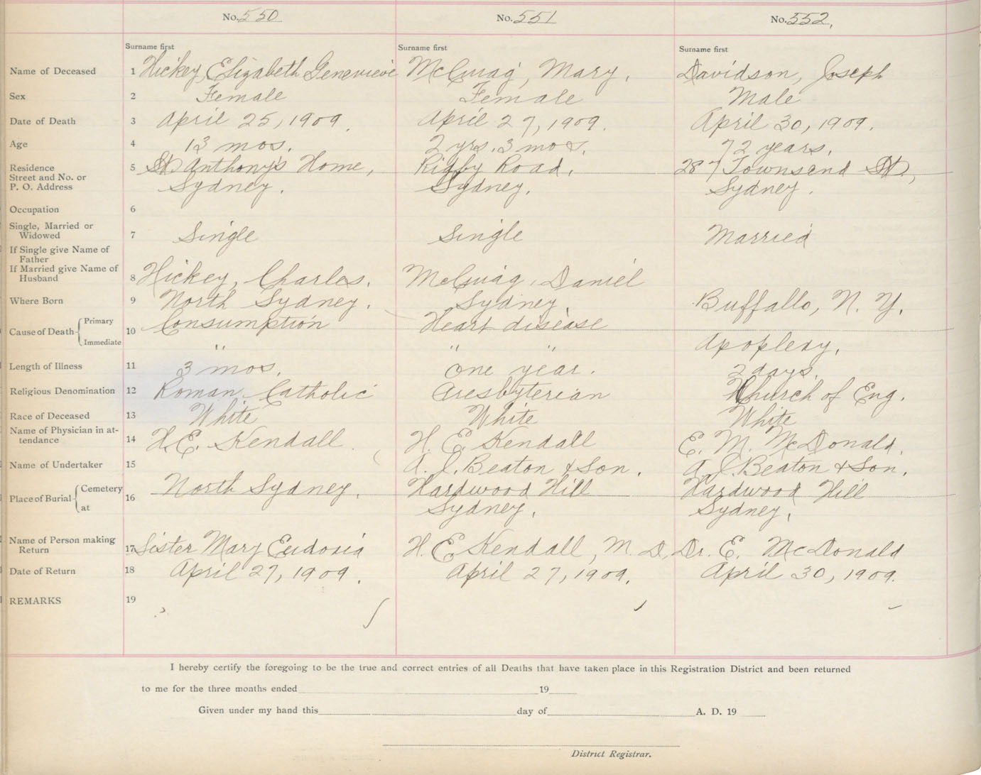 Death Registration: Year: 1909 book: 3 page: 91 number: 550