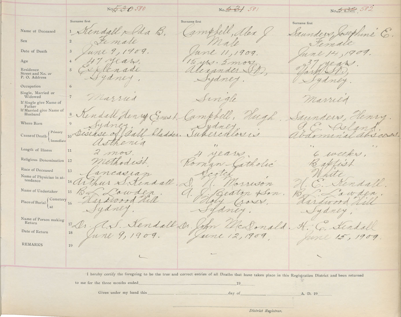 Death Registration: Year: 1909 book: 3 page: 96 number: 580