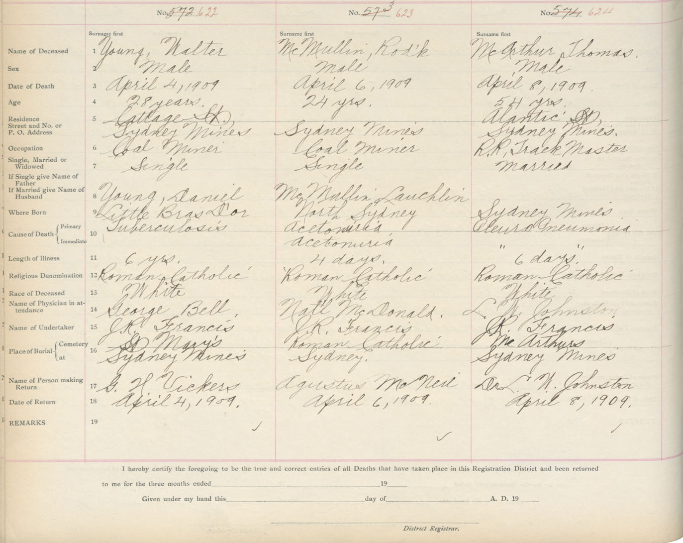 Death Registration: Year: 1909 book: 3 page: 103 number: 622
