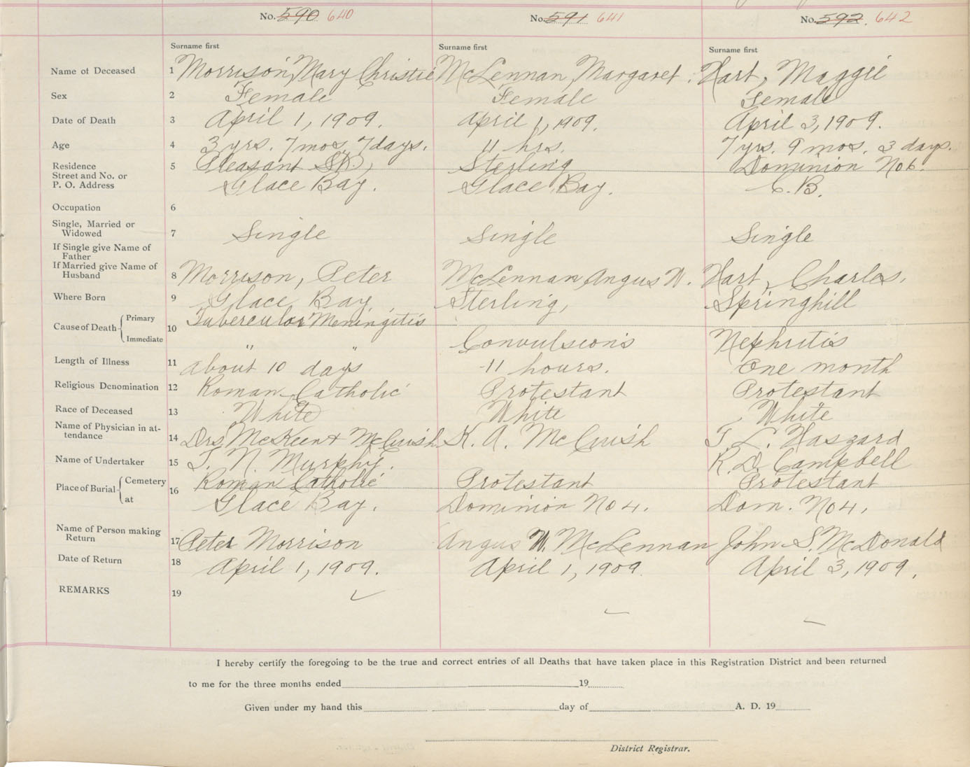 Death Registration: Year: 1909 book: 3 page: 106 number: 640