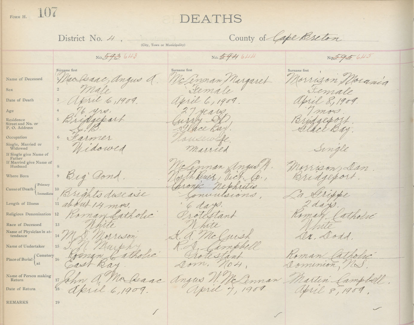 Death Registration: Year: 1909 book: 3 page: 107 number: 643