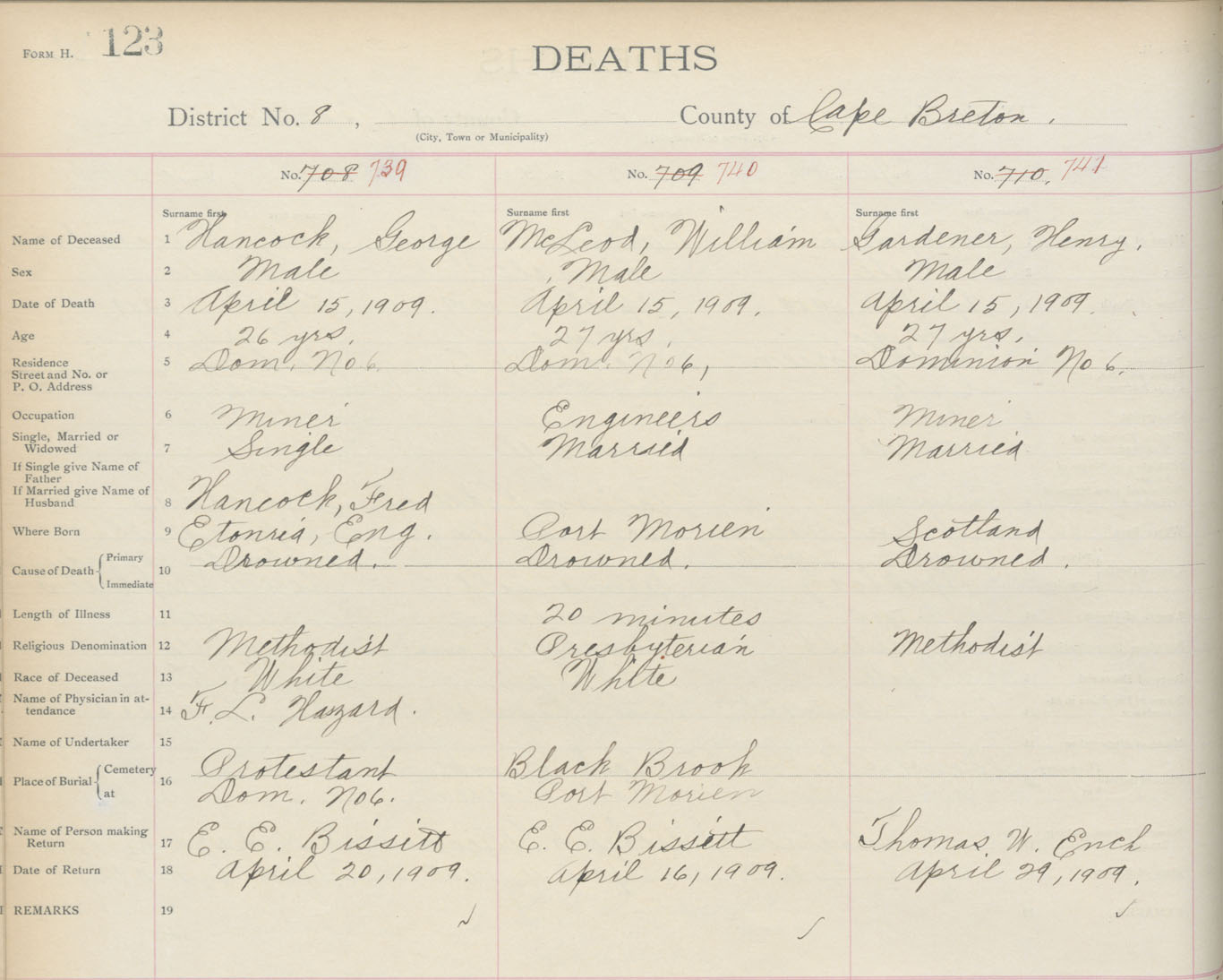 Death Registration: Year: 1909 book: 3 page: 123 number: 741