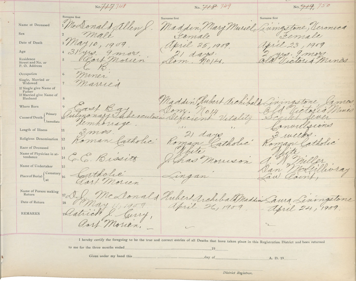 Death Registration: Year: 1909 book: 3 page: 124 number: 750