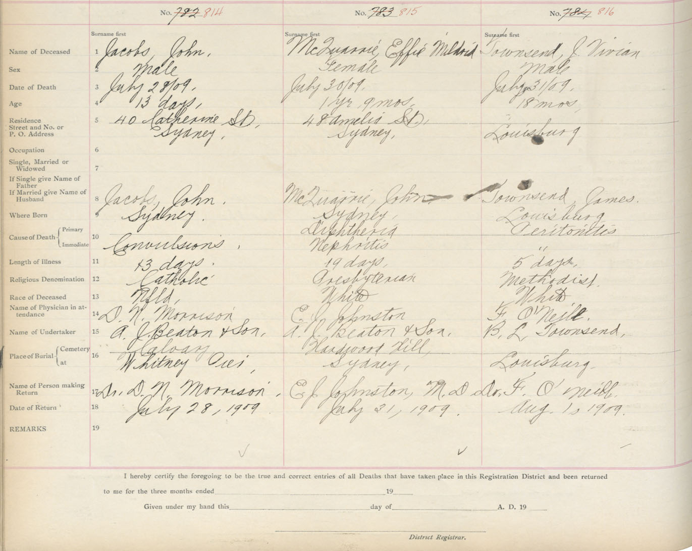 Death Registration: Year: 1909 book: 3 page: 135 number: 814