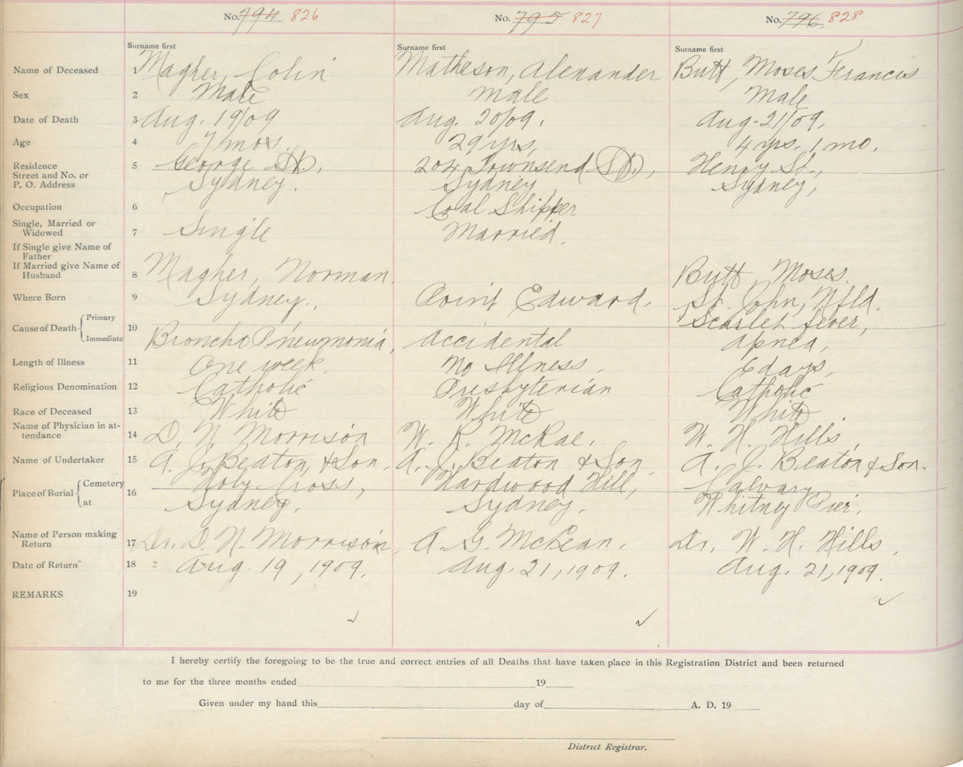 Death Registration: Year: 1909 book: 3 page: 137 number: 826