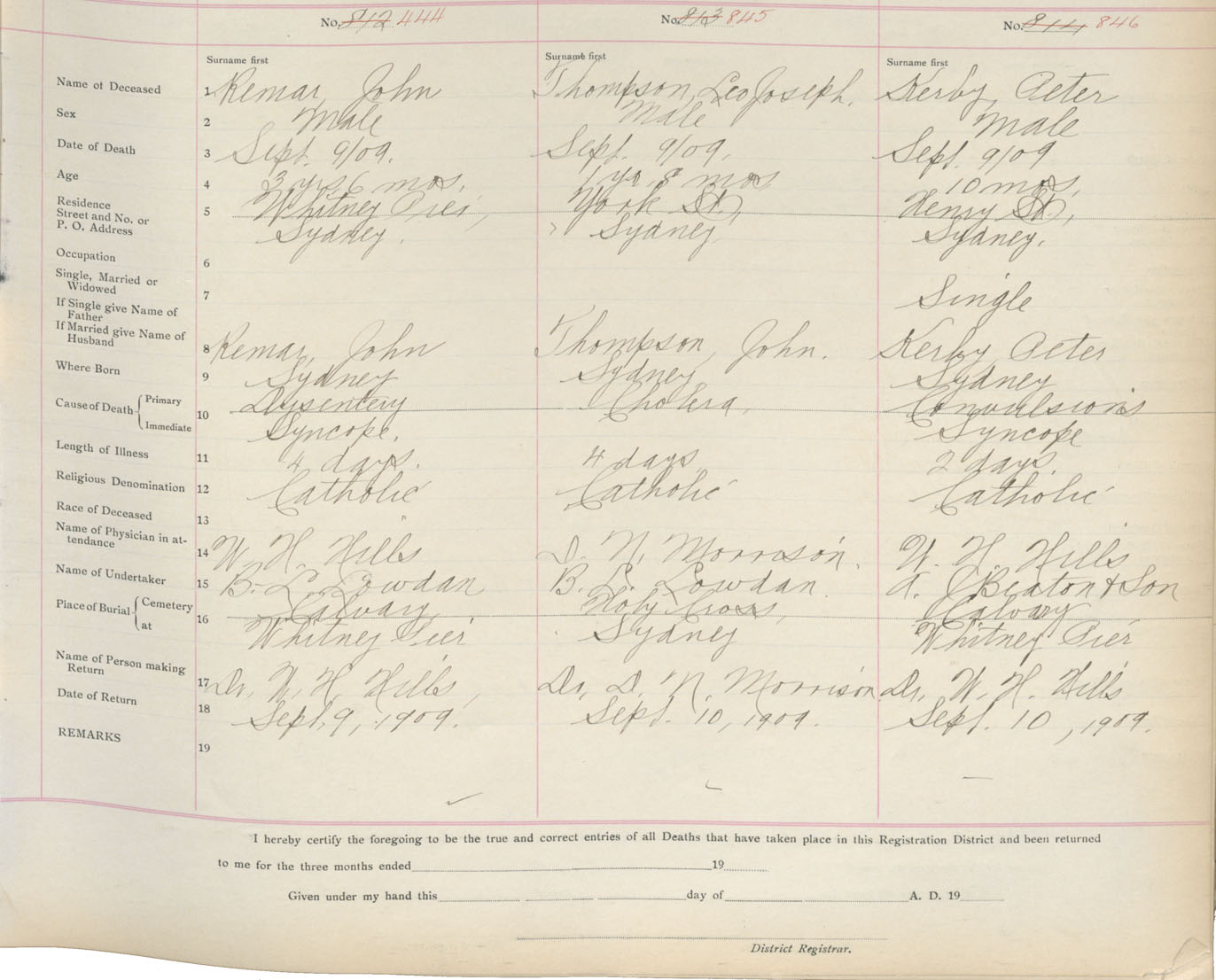 Death Registration: Year: 1909 book: 3 page: 140 number: 844