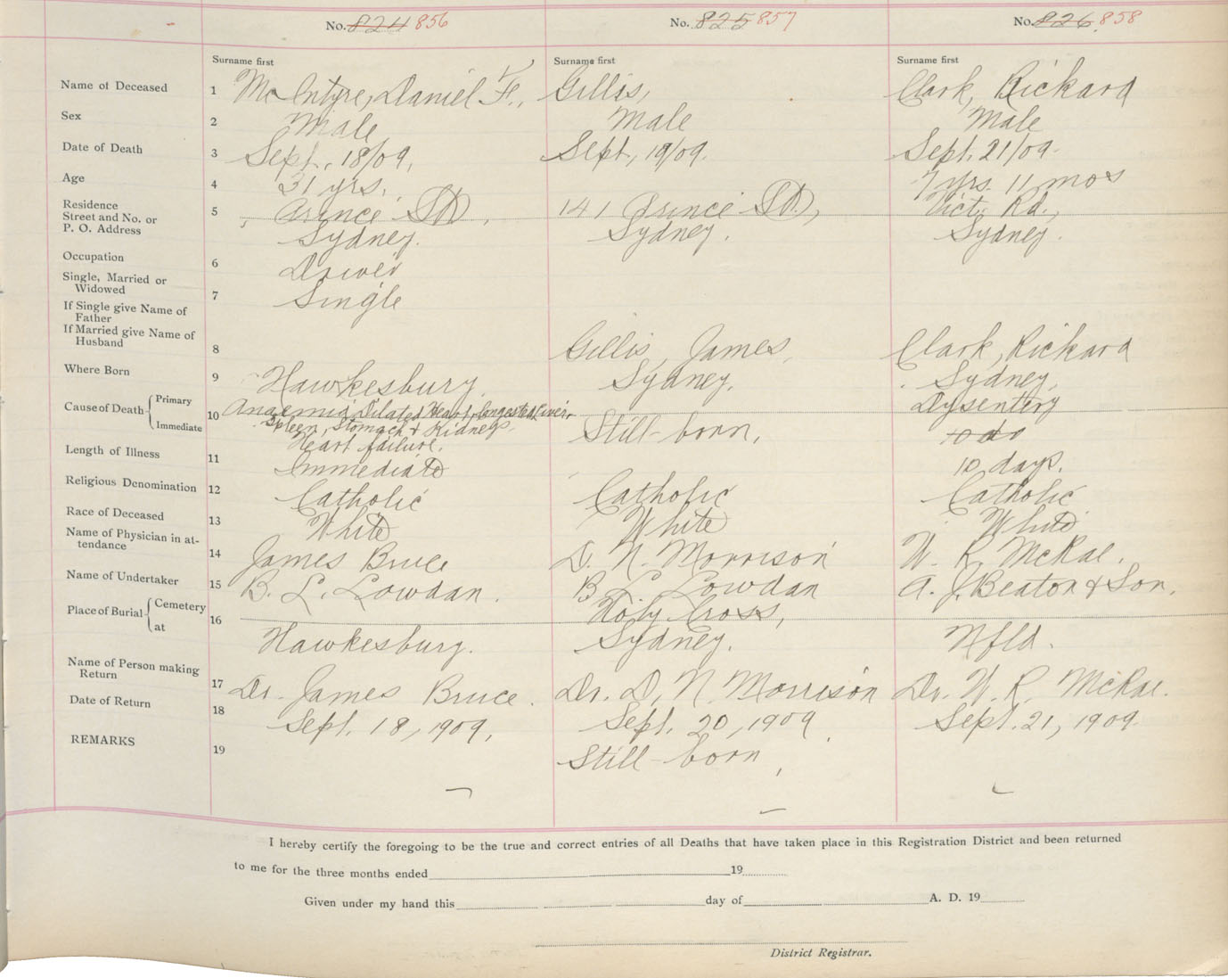 Death Registration: Year: 1909 book: 3 page: 142 number: 856