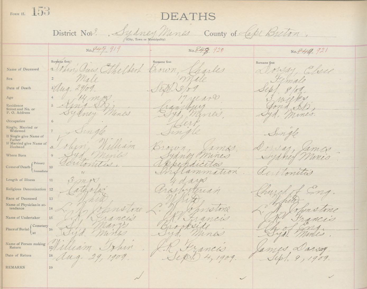 Death Registration: Year: 1909 book: 3 page: 153 number: 921