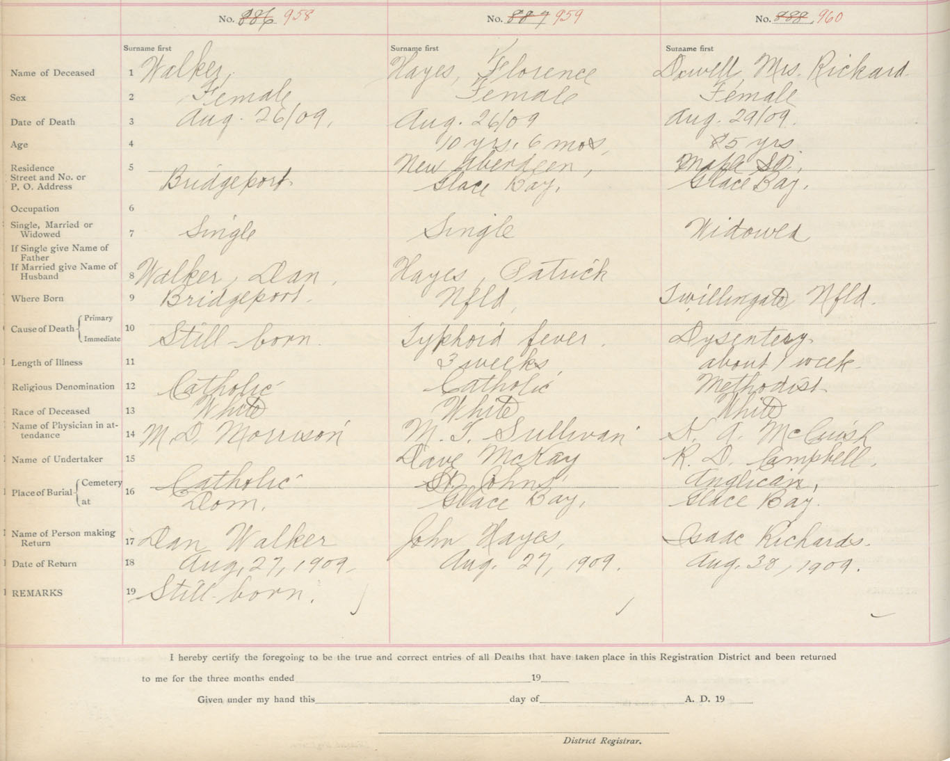 Death Registration: Year: 1909 book: 3 page: 159 number: 960