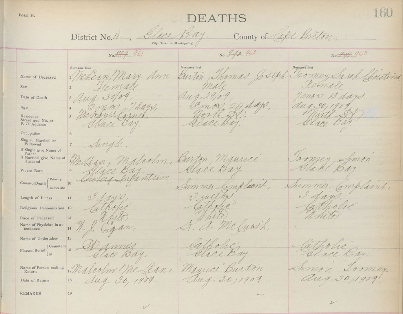Death Registration: Year: 1909 book: 3 page: 160 number: 963