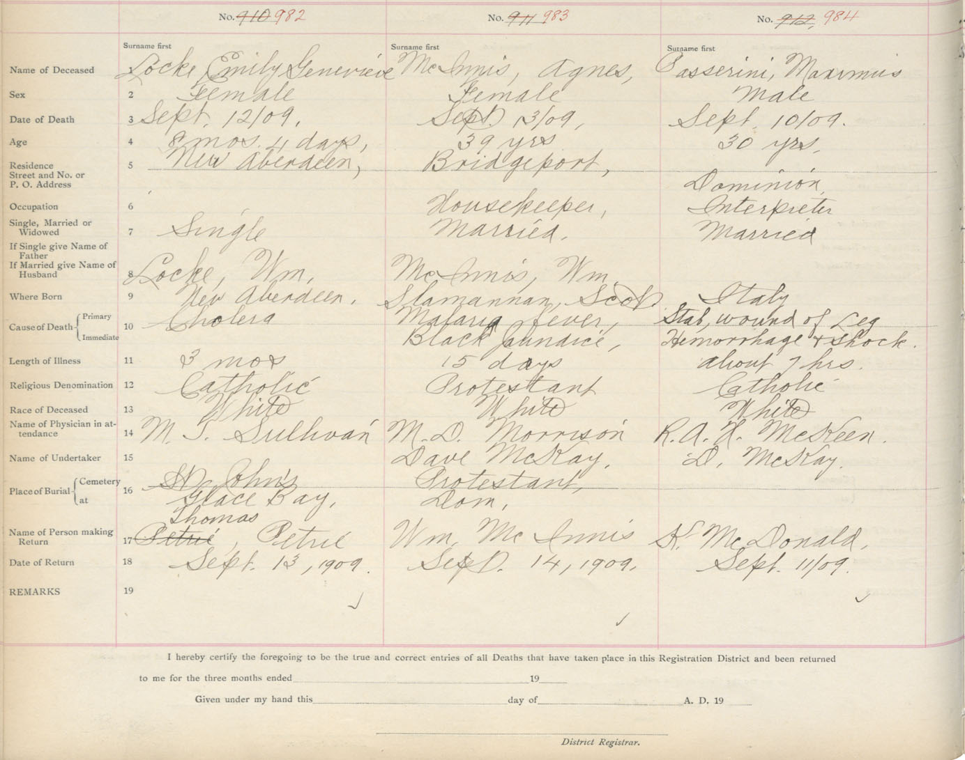 Death Registration: Year: 1909 book: 3 page: 163 number: 984