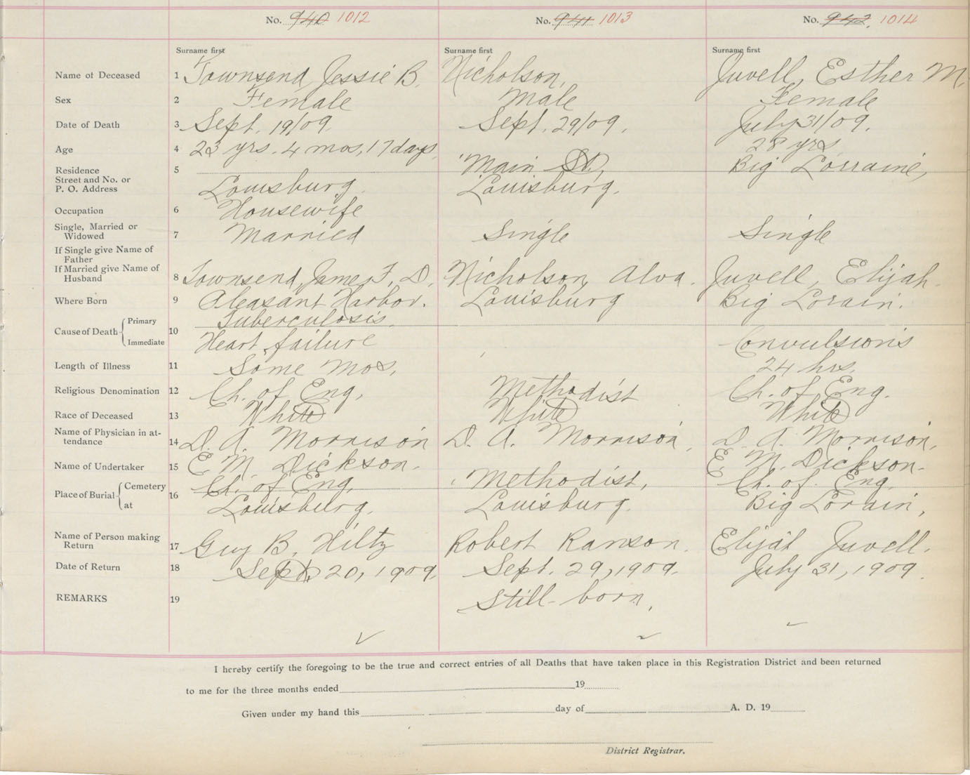 Death Registration: Year: 1909 book: 3 page: 168 number: 1014