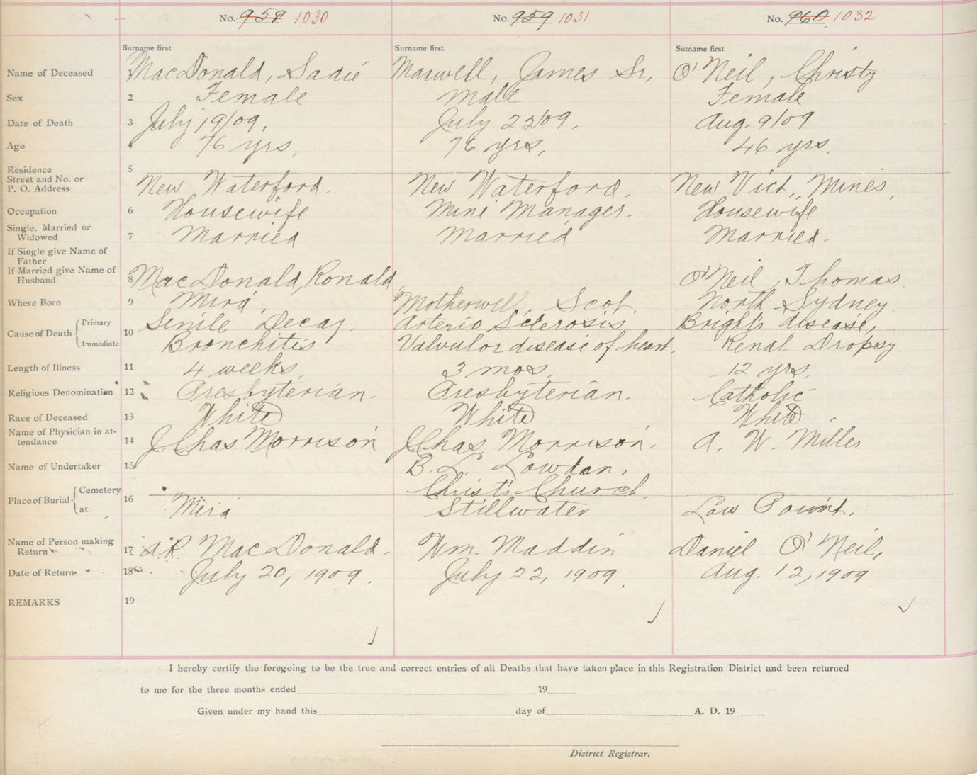 Death Registration: Year: 1909 book: 3 page: 171 number: 1032