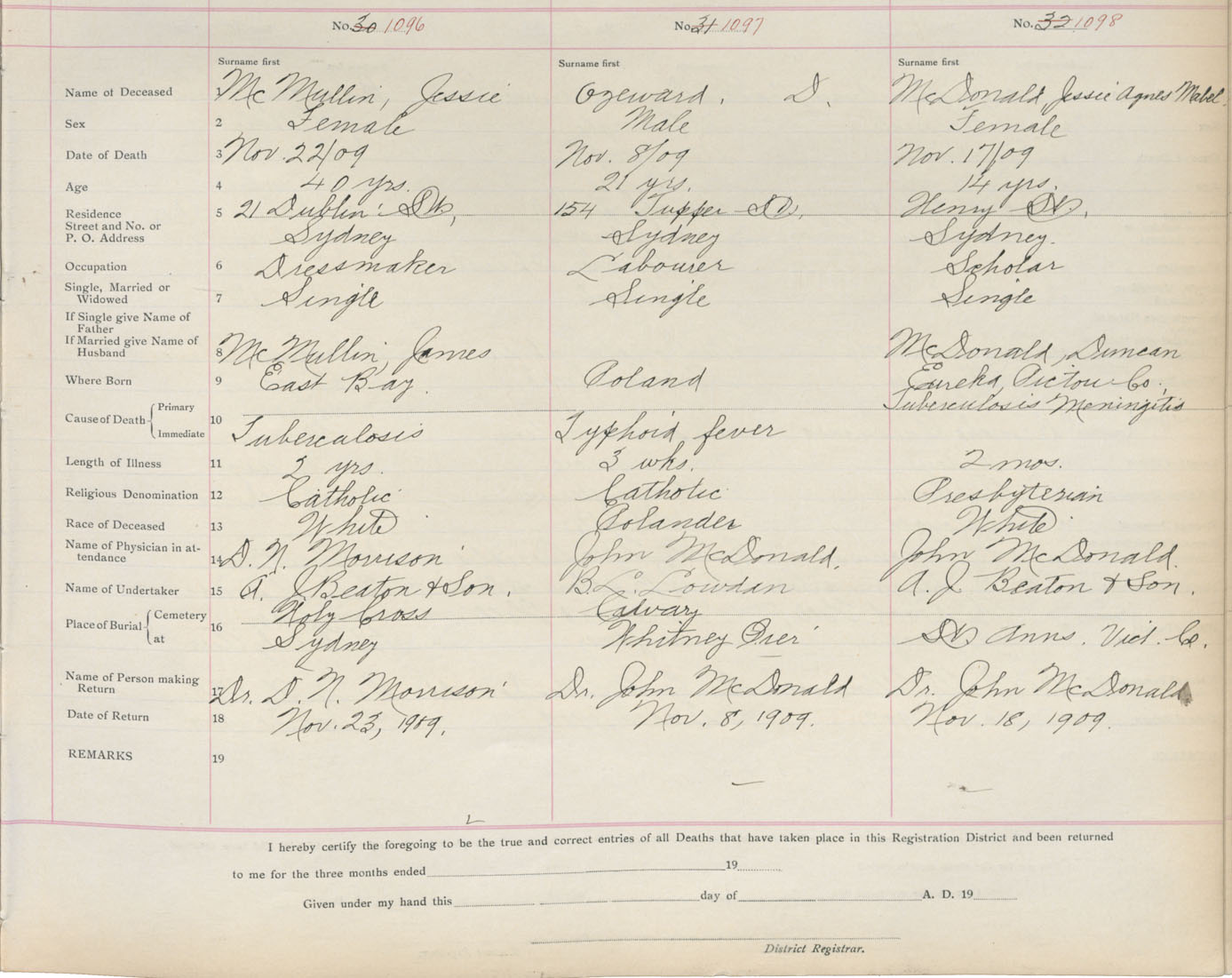 Death Registration: Year: 1909 book: 3 page: 182 number: 1098