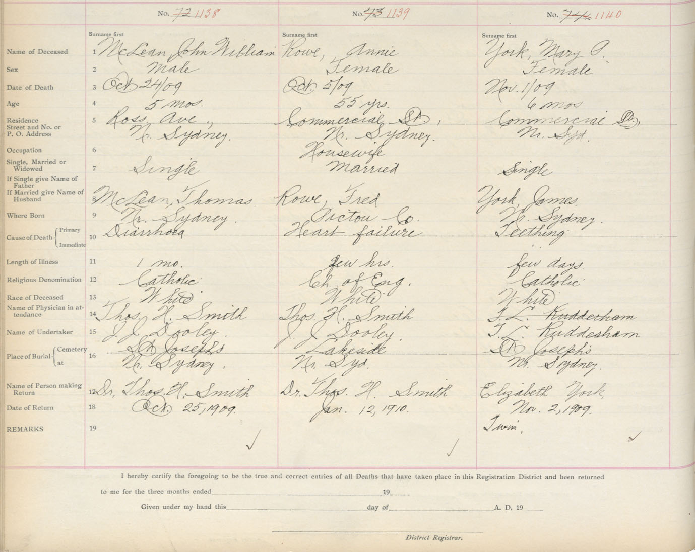 Death Registration: Year: 1909 book: 3 page: 189 number: 1138
