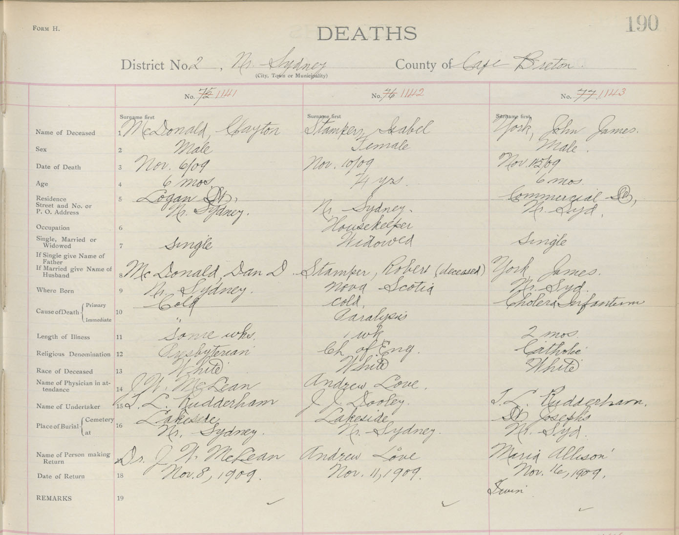Death Registration: Year: 1909 book: 3 page: 190 number: 1141