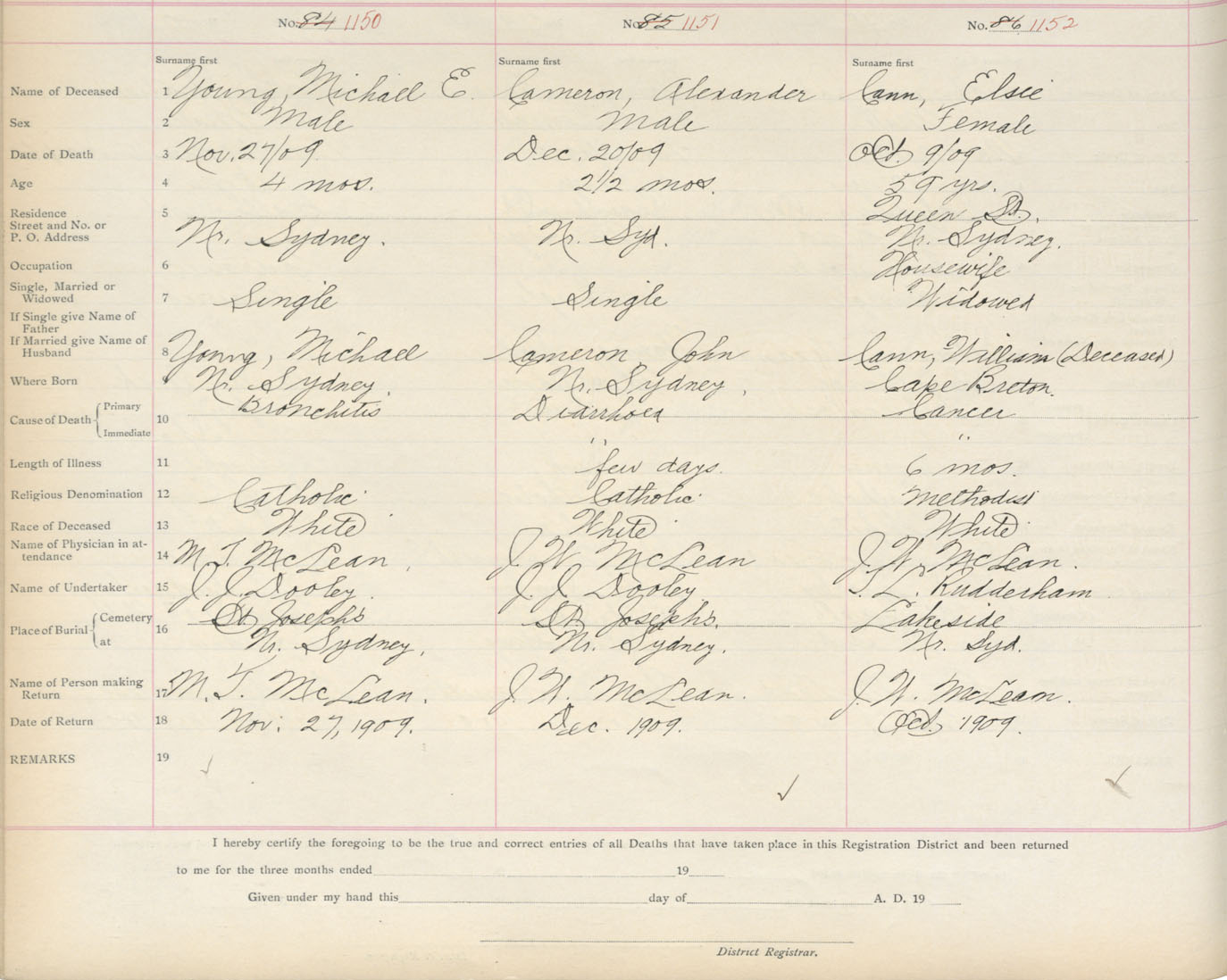 Death Registration: Year: 1909 book: 3 page: 191 number: 1150