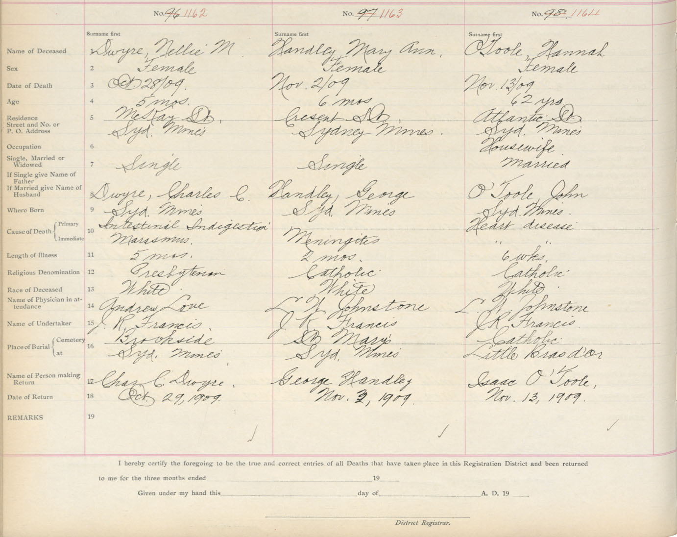 Death Registration: Year: 1909 book: 3 page: 193 number: 1162