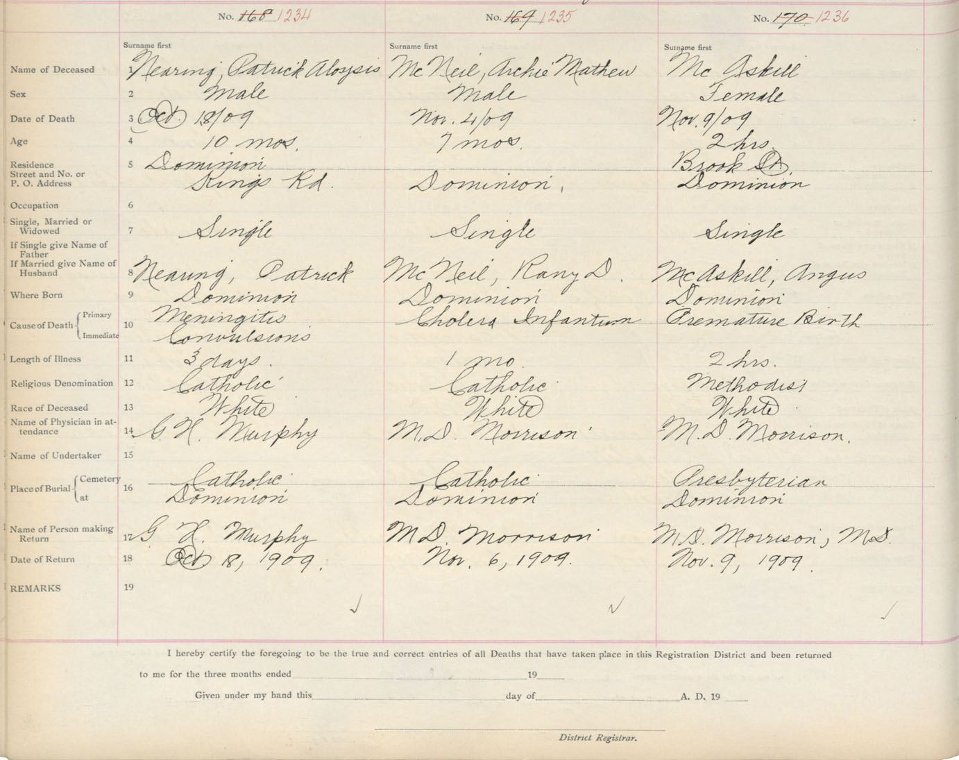 Death Registration: Year: 1909 book: 3 page: 205 number: 1234