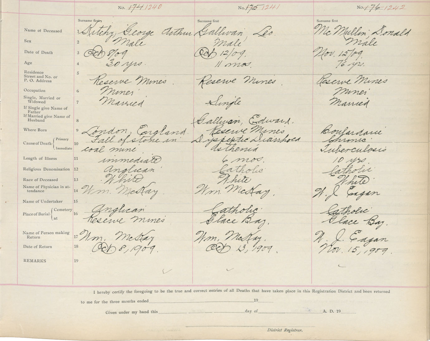 Death Registration: Year: 1909 book: 3 page: 206 number: 1240