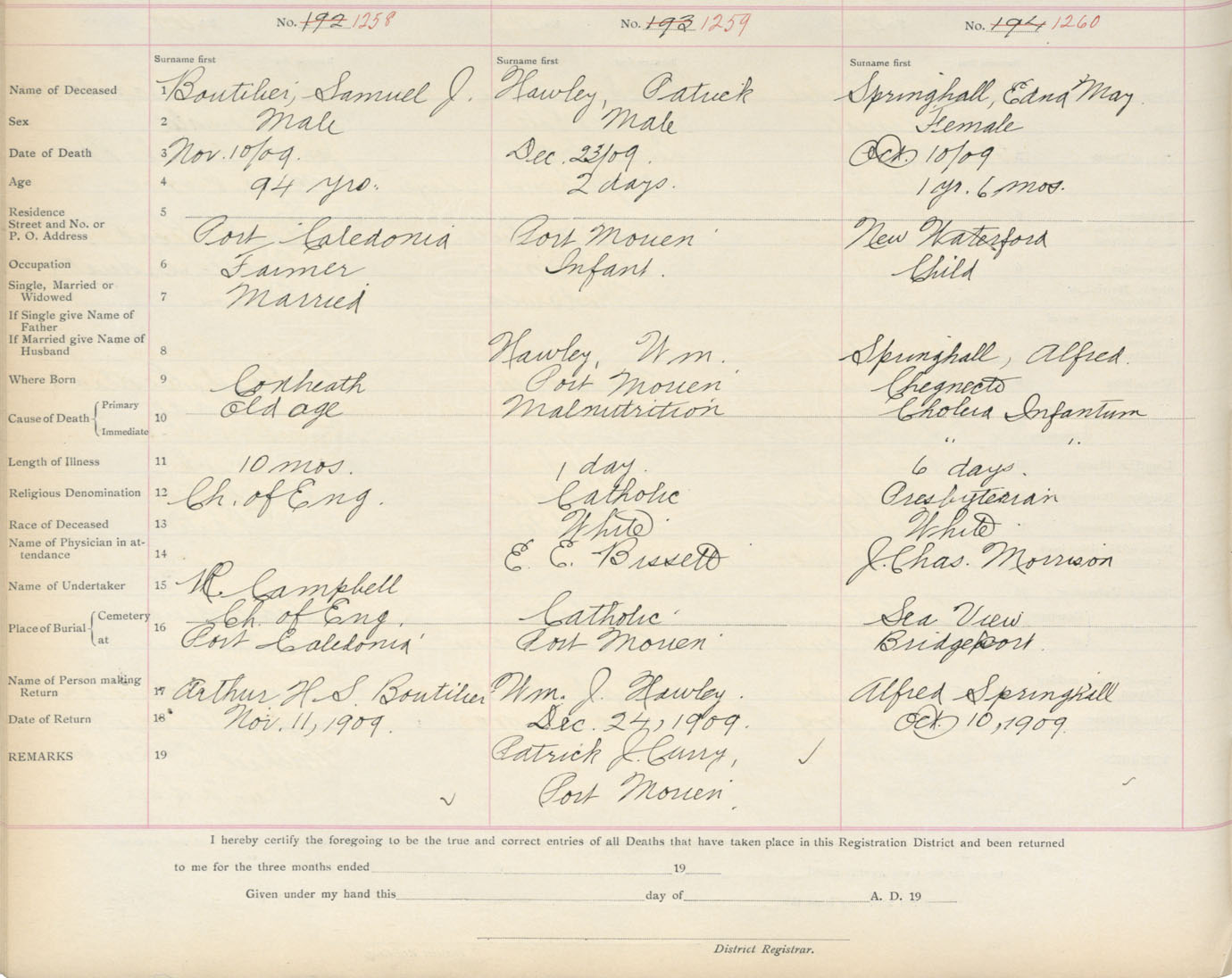 Death Registration: Year: 1909 book: 3 page: 209 number: 1260