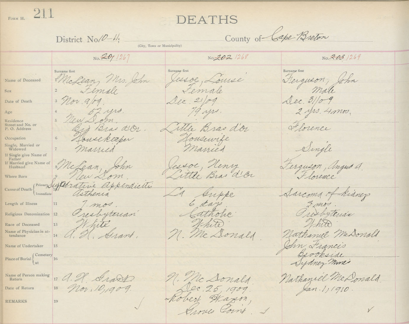 Death Registration: Year: 1909 book: 3 page: 211 number: 1269