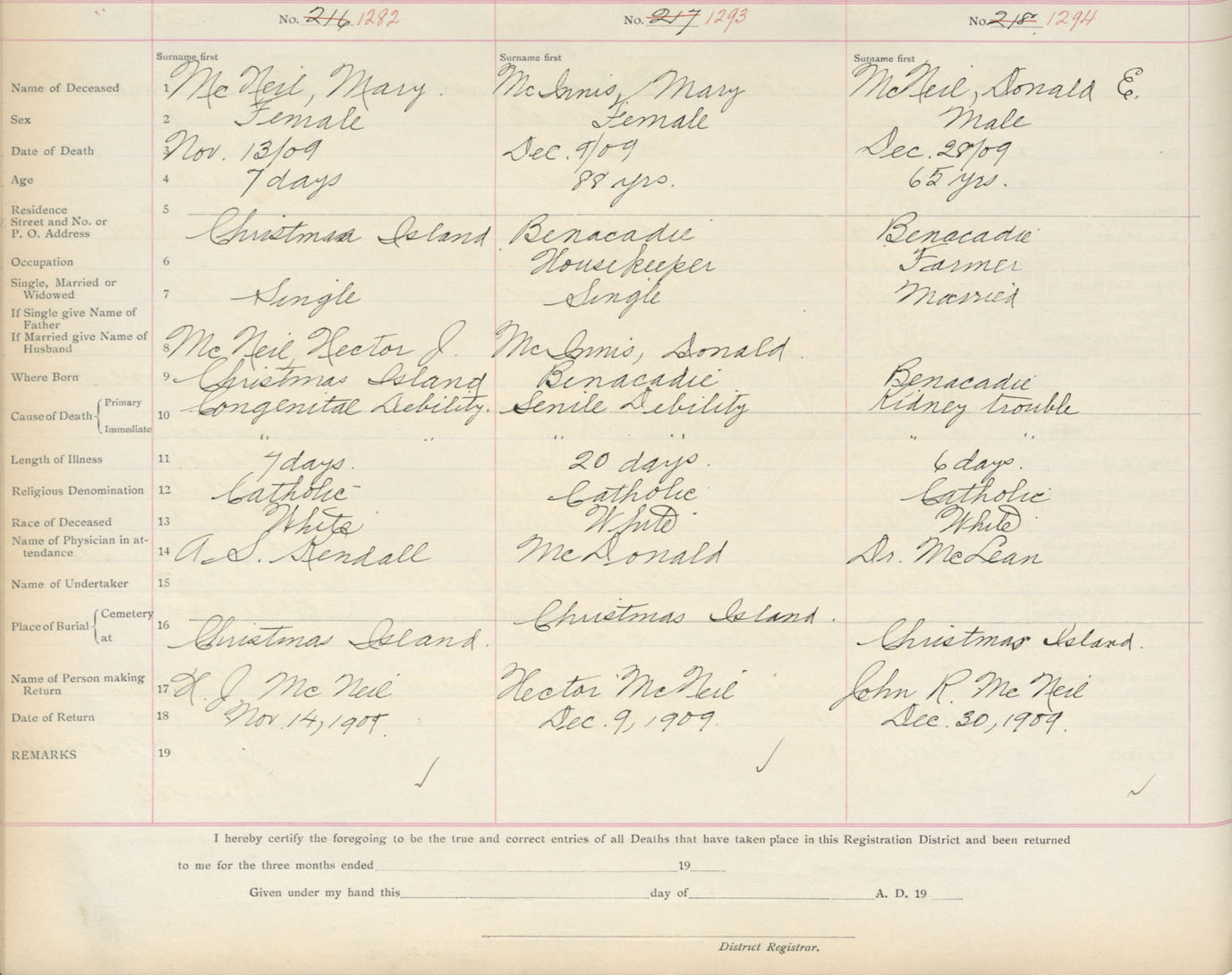 Death Registration: Year: 1909 book: 3 page: 213 number: 1294