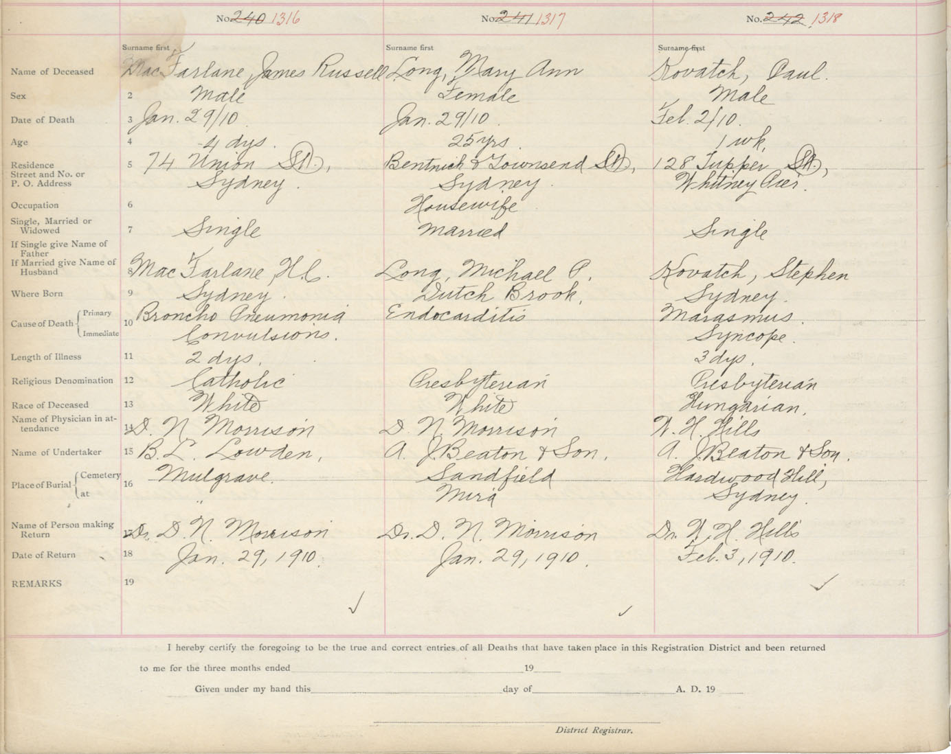 Death Registration: Year: 1910 book: 3 page: 217 number: 1318