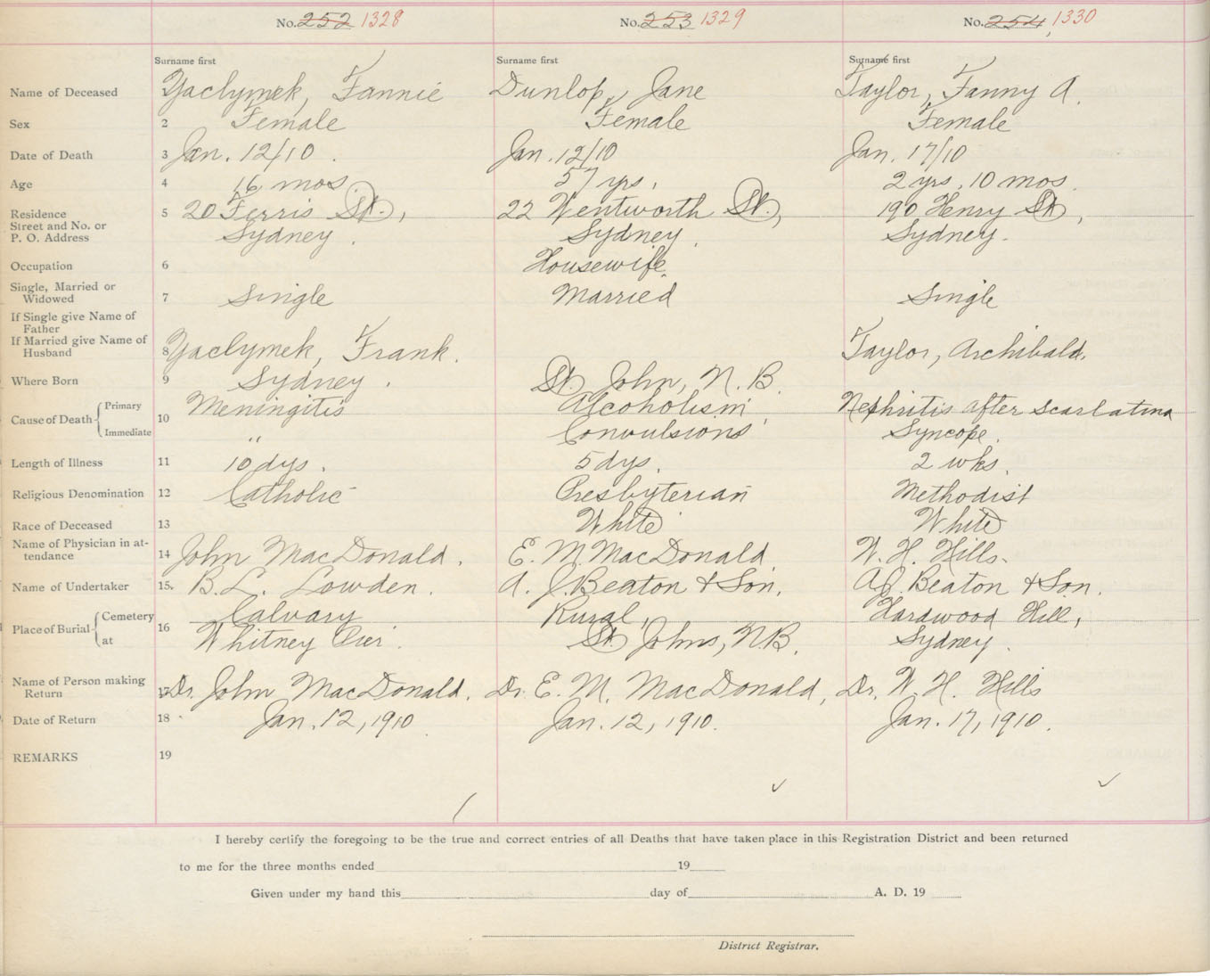 Death Registration: Year: 1910 book: 3 page: 219 number: 1328