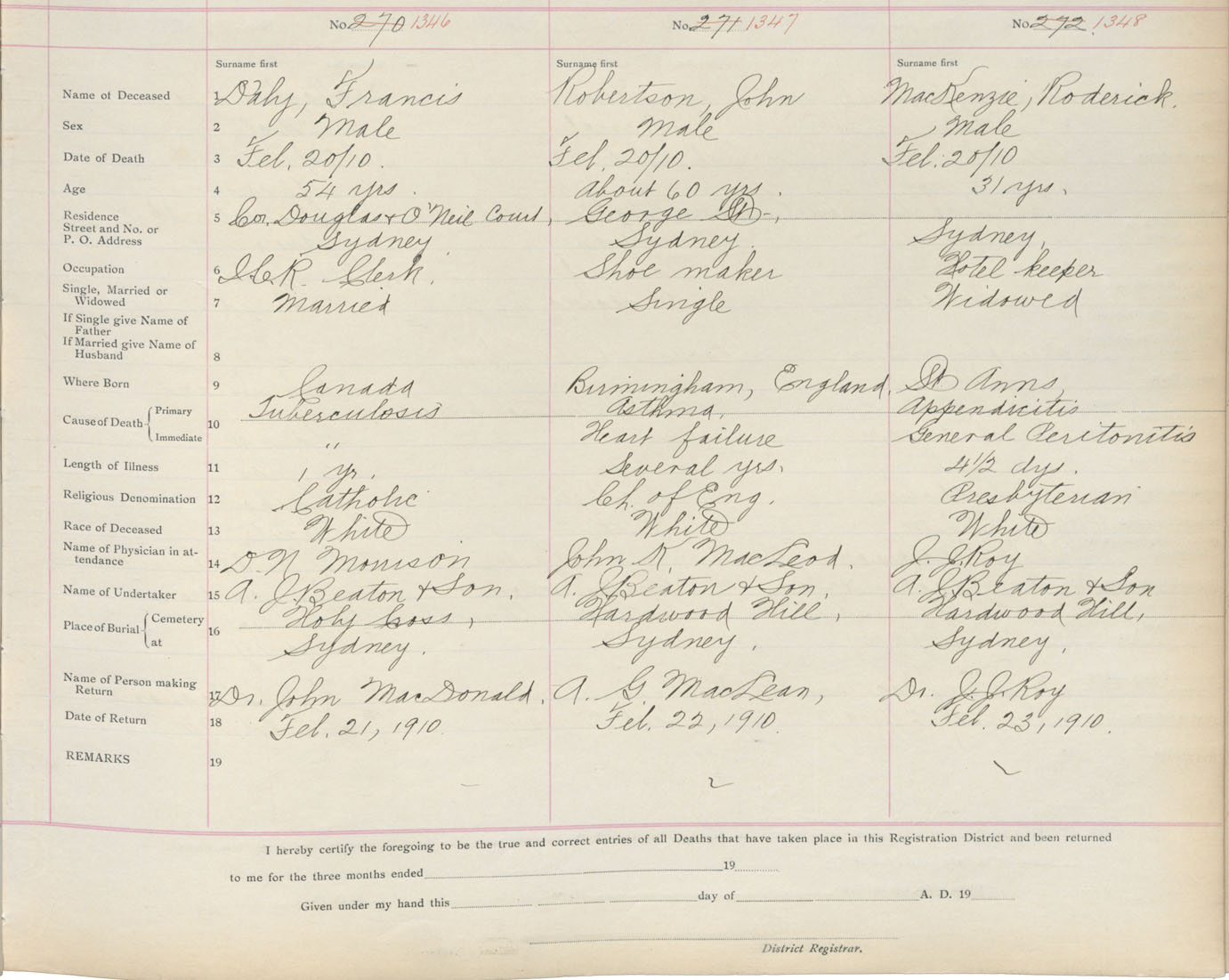Death Registration: Year: 1910 book: 3 page: 222 number: 1346